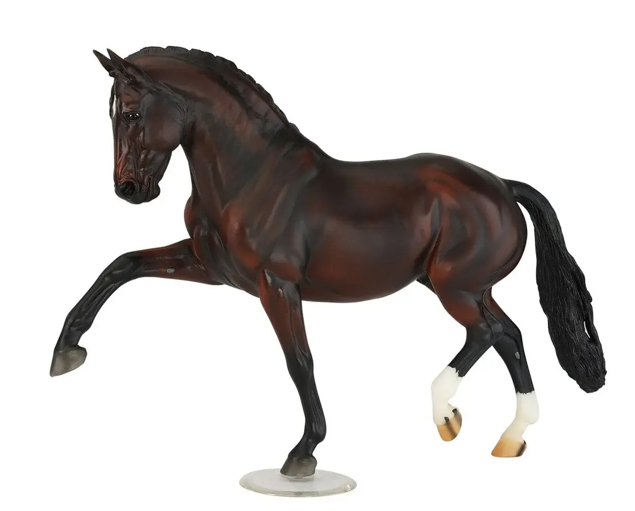 In the ring he was known for his ability to collect his stride for classic dressage movements such as the piaffe and passage, as well as showing off his stretch and relaxation in ground-sweeping walks. Retired from competition in early 2024, Salvino is preparing to settle into life as a breeding stallion and sire the next generation of dressage greats.