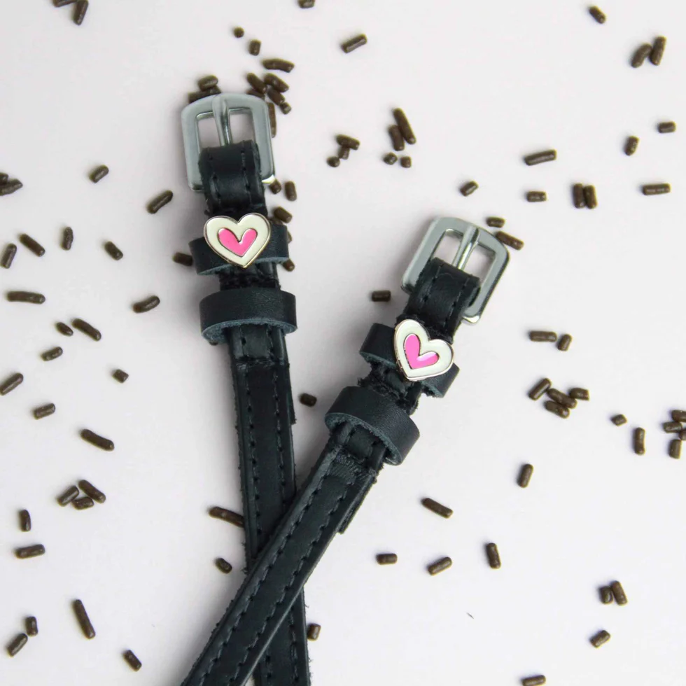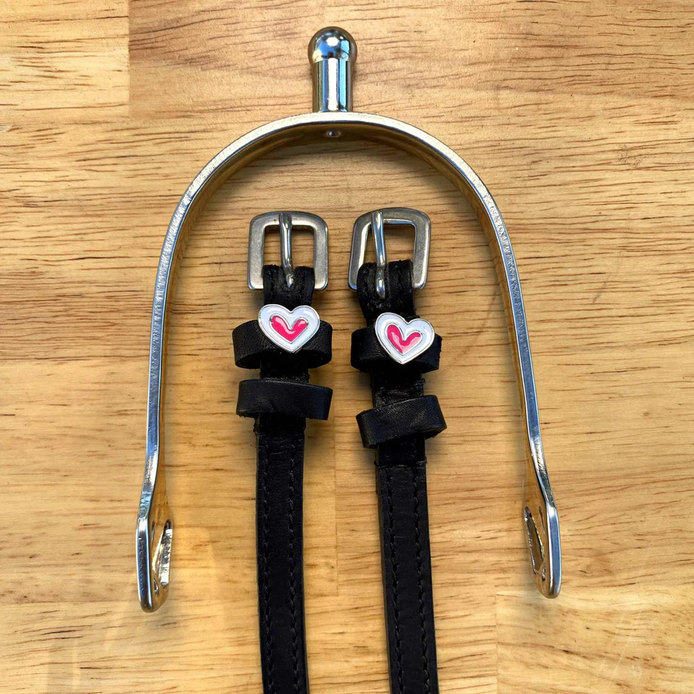 Heart Smooshes Spur Straps from ManeJane bring together luxury, durability, and personality. Handcrafted from premium black leather with a non-stretch interior, these Spur Straps hold their shape ride after ride. Each pair features a stainless steel buckle, two keepers, and a custom ManeJane charm for a signature look. At 18 inches long, they fit smoothly through your spurs and stay secure. Elevate your tack with ManeJane Spur Straps—where form meets function in every ride.