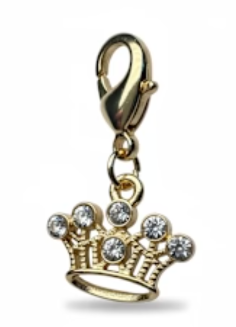 Give your look a royal finishing touch with the Dubois Cheval Sparkly Crown Braid Charm! This beautiful gold crown charm, adorned with sparkling pavé crystals, is the ultimate accessory for equestrians who love a little luxury. Whether you wear it on your bonnet, in braided manes, on saddle rings, bridles, belt loops, or even on tall boot zippers, this chic charm brings a hint of glamour and a dash of luck to every ride.