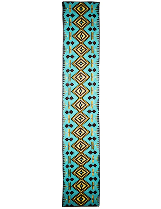 Brighten up your space with the vivid colors and intricate patterns of the "Turquoise Horizon" Southwest Jacquard Table Runner. Featuring striking diamond motifs and a rich turquoise backdrop, this runner blends traditional Southwestern artistry with a fresh, modern aesthetic.