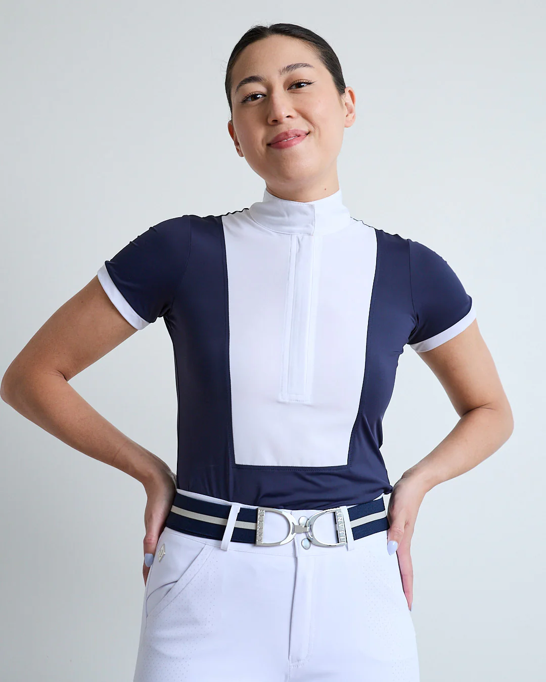 Add equestrian flair with the 70° Ellany Blueberries & Cream Silver Stirrup Elastic Belt. Stylish, comfortable, and adjustable, perfect for everyday wear or riding-inspired outfits.