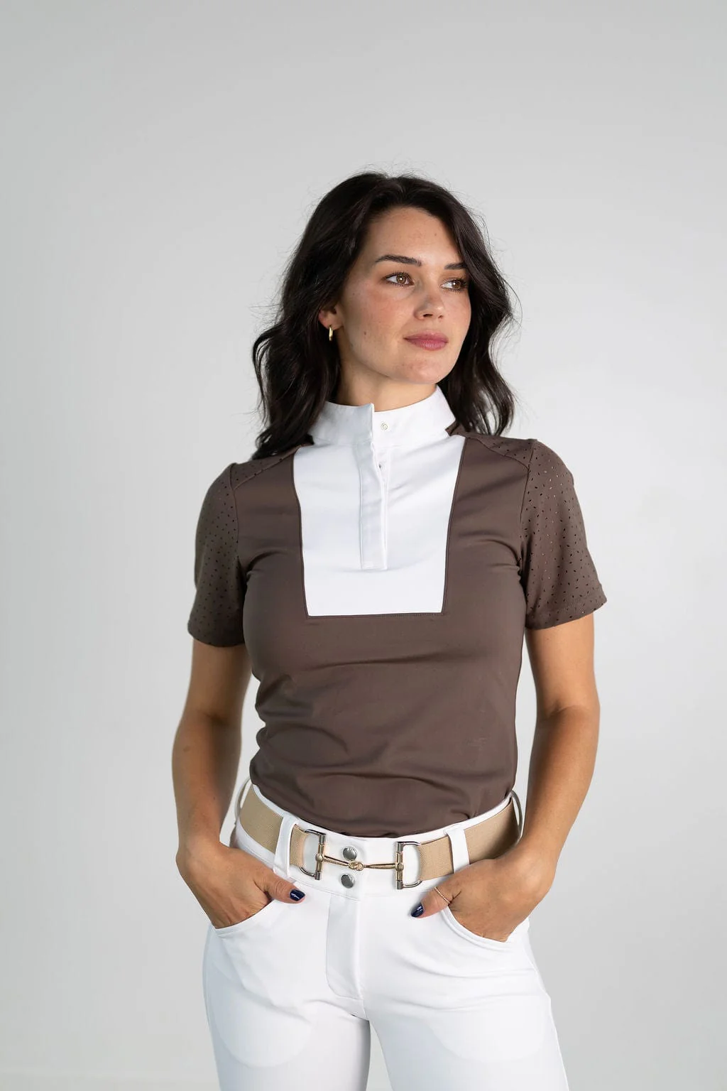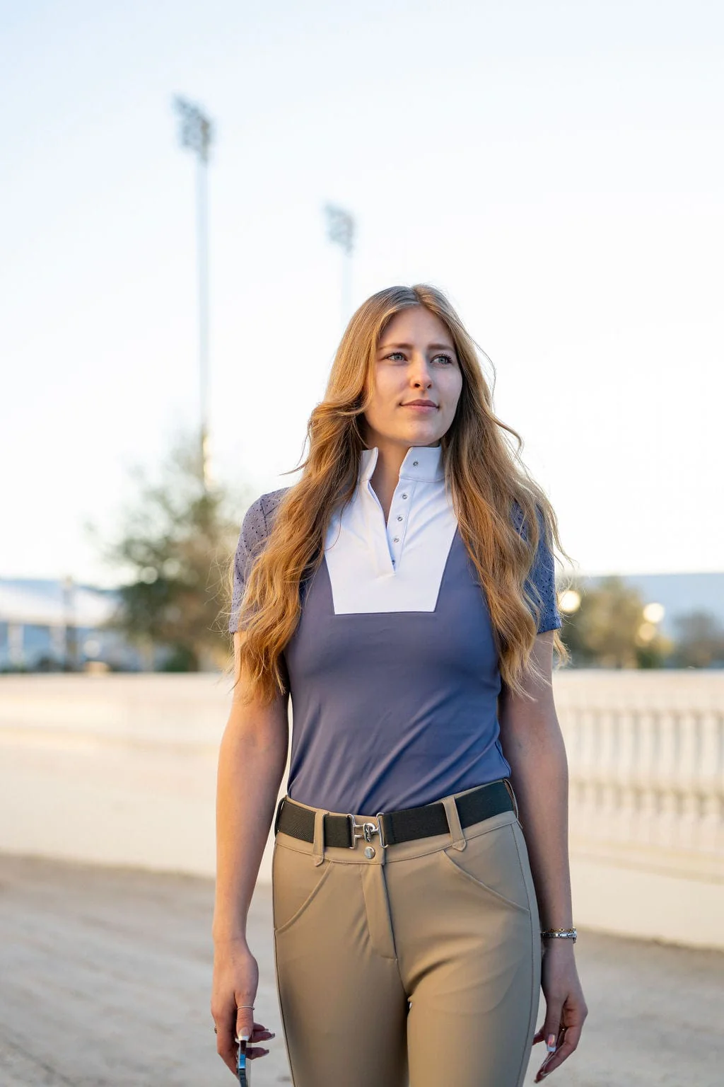 Introducing the Amelia Show Shirt, the perfect blend of elegance and functionality and hunter ring approved! Crafted from a luxurious fabric, this shirt offers a soft touch and a refined look that stands out in the show ring.