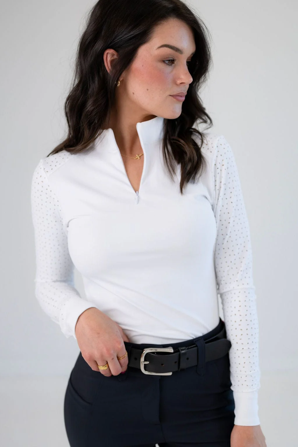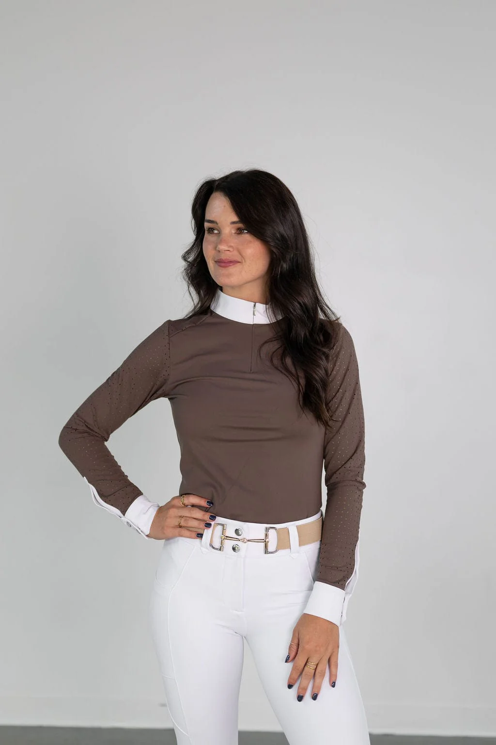 Introducing the Cassidy Show Shirt: where high performance meets sophisticated style. Crafted from advanced moisture-wicking fabric, this shirt ensures you stay cool and dry even during the most intense competitions. The breathable material quickly draws sweat away from your skin, keeping you comfortable and focused.