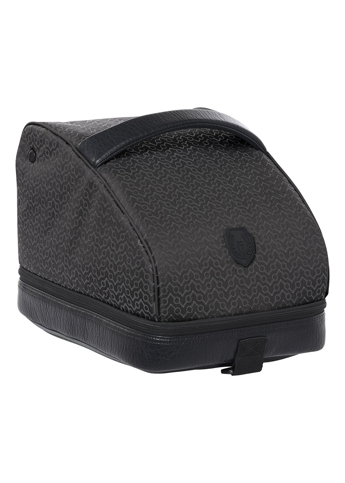 From tack room to tack stall, this helmet bag goes wherever your ride takes you. Crafted from water-resistant fabric in Kerrits’ exclusive Chevron Bits print with a faux leather base, it stands up to mud, hay, and hustle. Fully padded with mesh inserts to protect and air out your helmet, because a little breeze goes a long way after a summer ride. A reinforced top handle and detachable shoulder strap offer easy carrying options, and a zippered pocket holds gloves, treats, or lucky charms. Everything your helmet didn’t know it needed.