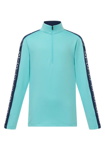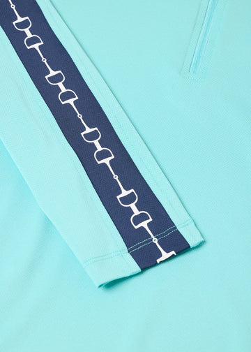 Kids will love this long sleeve riding shirt that keeps them cool as a cucumber through all their summer barn shenanigans. Lightweight and breathable with sweat-wicking magic and an eight-inch zip for adjustable airflow, it’s built for all-day comfort. UPF+40 sun protection keeps them shielded while they chase pony dreams, and the subtle snaffle bit print down the sleeves adds a timeless equestrian touch.