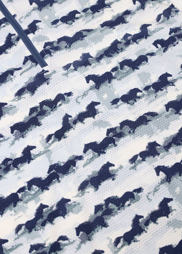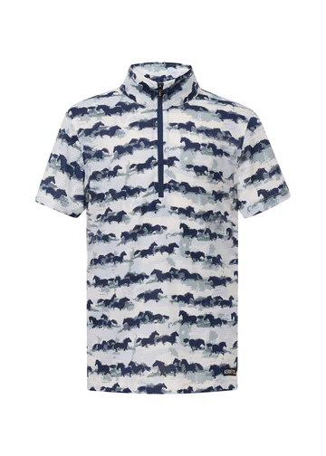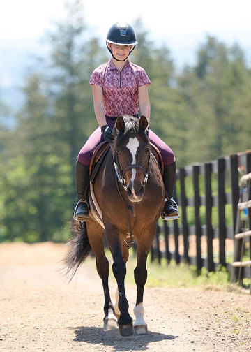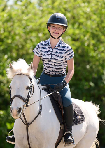 Light as a feather and cool as a canter, this short sleeve Ice Fil® shirt keeps kids comfortable and protected with UPF+30 sun protection, perfect for long days at summer camp. Pony-loving prints disguise dust and dirt, while the high collar shields little necks, and the eight-inch zip allows for extra airflow. For head-to-toe equine style, pair with the matching Kids Performance Tights.