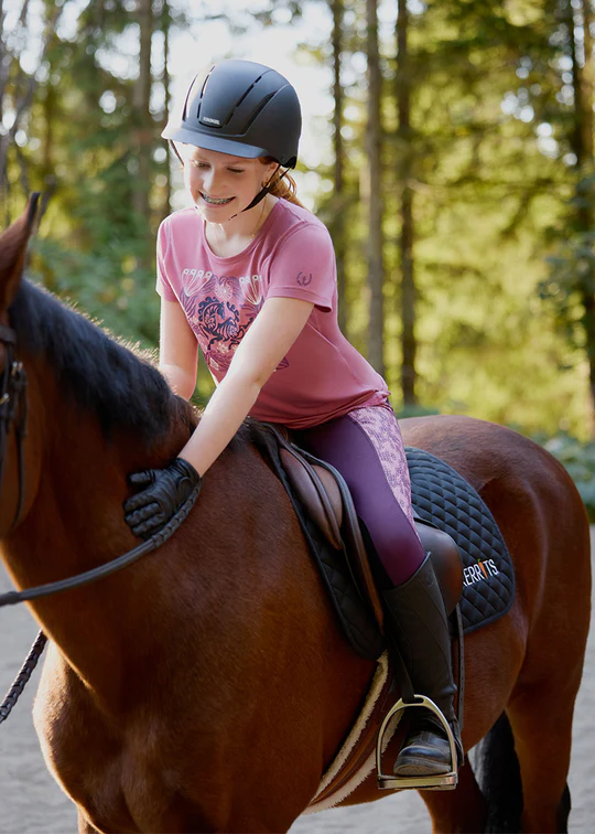 Kids love how these tights feel softer than a pony’s nose and come in a fun rainbow of colors and patterns. Practical parents adore how beautifully they hold up ride after ride and wash after wash. The adjustable elastic drawstring helps them stretch across seasons. No wonder these beloved Kerrits tights have helped sprout over a million equestrian careers worldwide.