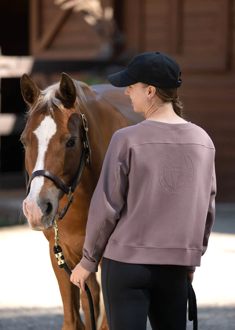 Kerrits SP26' Logo Crew Neck Sweatshirt combines cozy comfort with sleek style. Soft, durable fabric with a classic logo design makes it perfect for layering on chilly rides or casual wear.