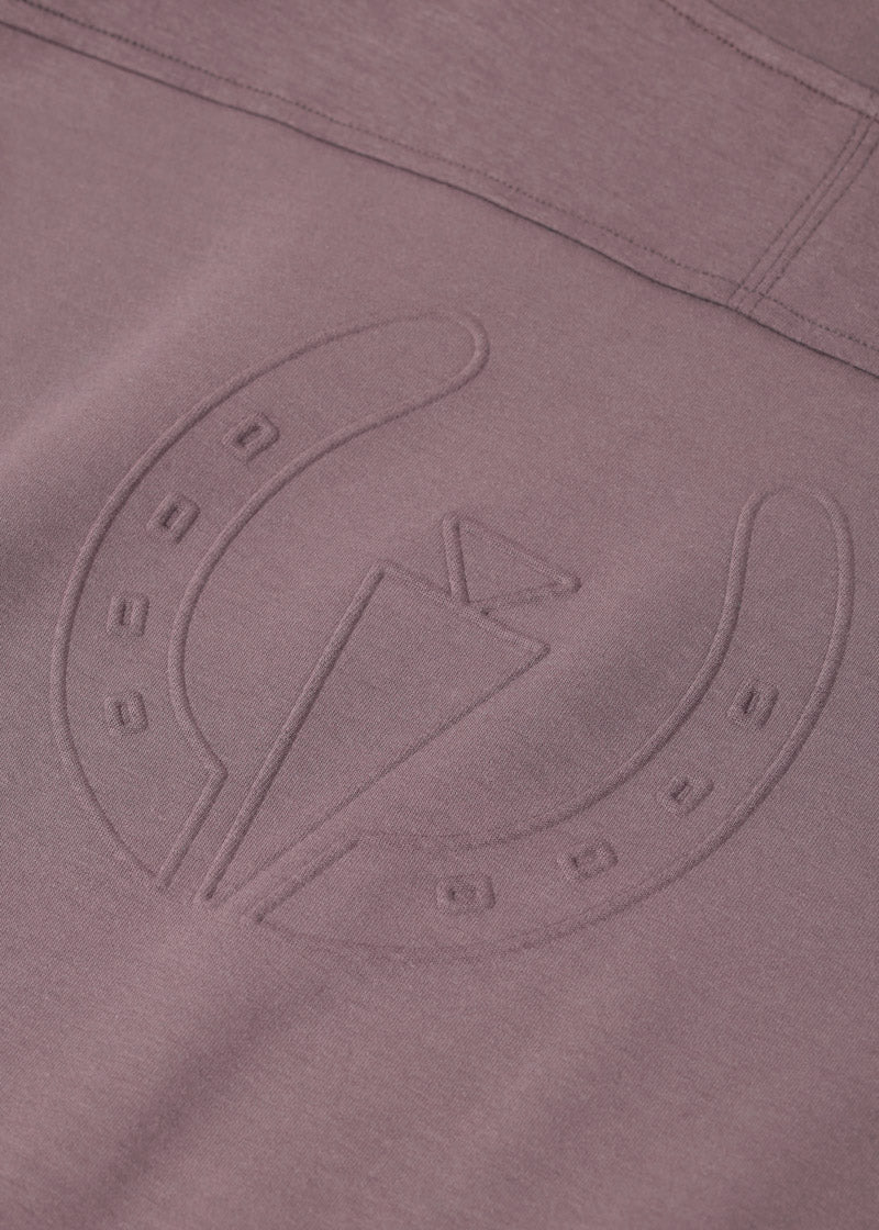 Kick on and keep cozy while spending time with your barn friends in this soft, heathered, mid-weight crew neck sweatshirt. Designed for effortless style and everyday comfort, the breathable poly-cotton-spandex blend offers just the right amount of stretch to move with you. A flattering hip-length silhouette and easy pullover fit make it a go-to layer, while the embossed Kerrits logo adds a subtle equestrian nod— if you know you know.