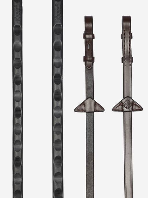 The leather is nylon lined to prevent stretching or breaking. Our signature LeMieux stamped leather martingale stops lend distinctive style. Buckle bit attachments complete the look.