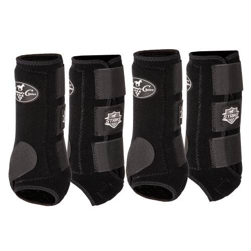 STRIKE Shell Protection: High-quality shatterproof TPU, provides an optimum shield from interference. Provides coverage over the fetlock and tendons resulting in complete protection. Strategically placed between the VenTECH neoprene and the UltraShock to ensure no restriction in movement and to allow the hook and loop straps to custom adjust the STRIKE Boot to your horse’s leg for a perfect fit.