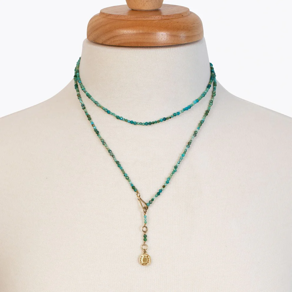 From Stable to Street, the Aurora Turquoise Long Strand Necklace by URBAN-EQUESTRIAN blends gemstone beauty with equestrian charm. Hand-strung turquoise beads, treasured for protection, strength, and good fortune, flow into a radiant double-sided horseshoe coin pendant that symbolizes luck and heritage. Designed for versatility, it can be worn long, layered, or doubled for impact. A striking piece of equestrian jewelry, it’s a chic horse girl accessory and meaningful horse lover gift.