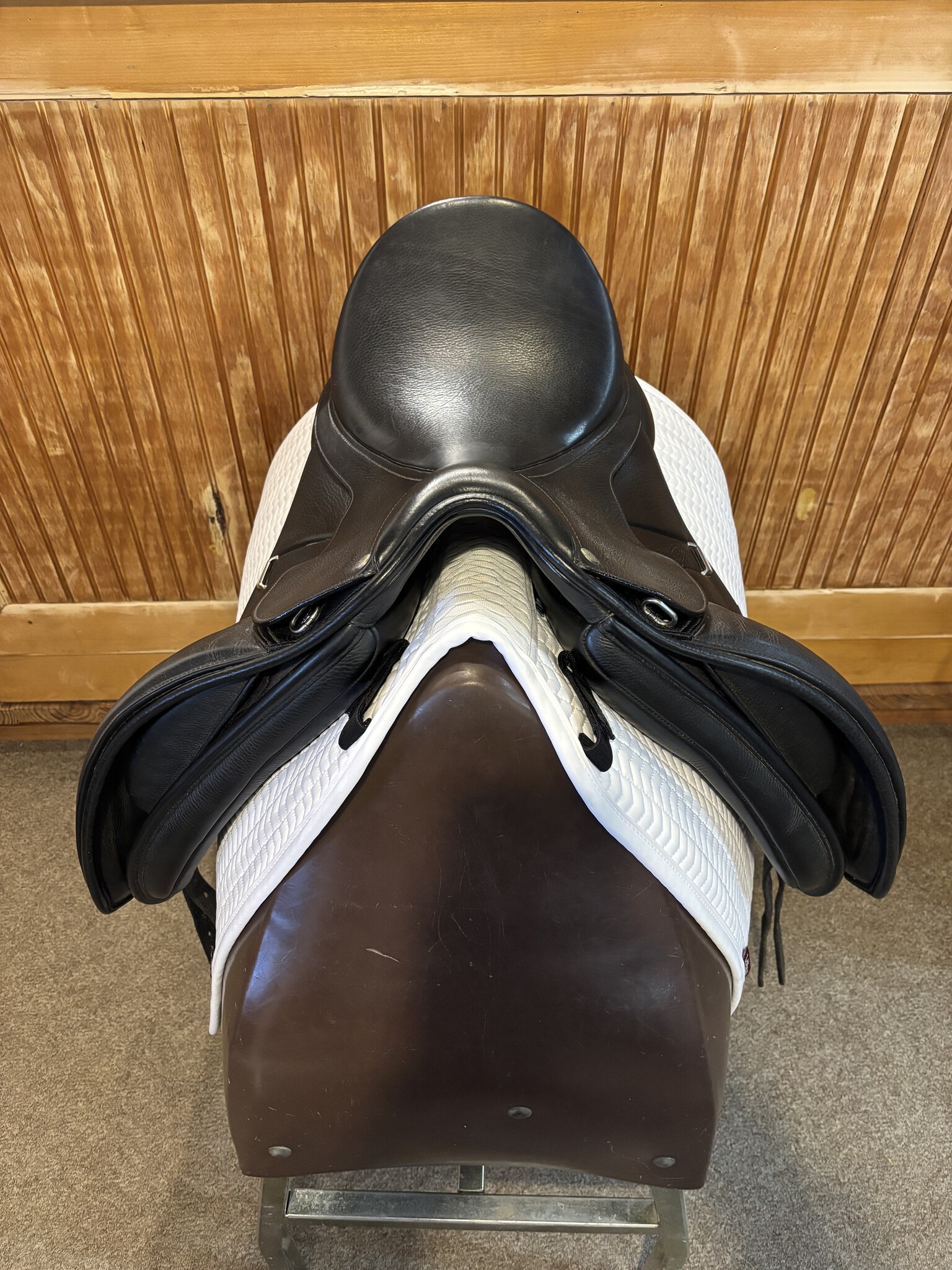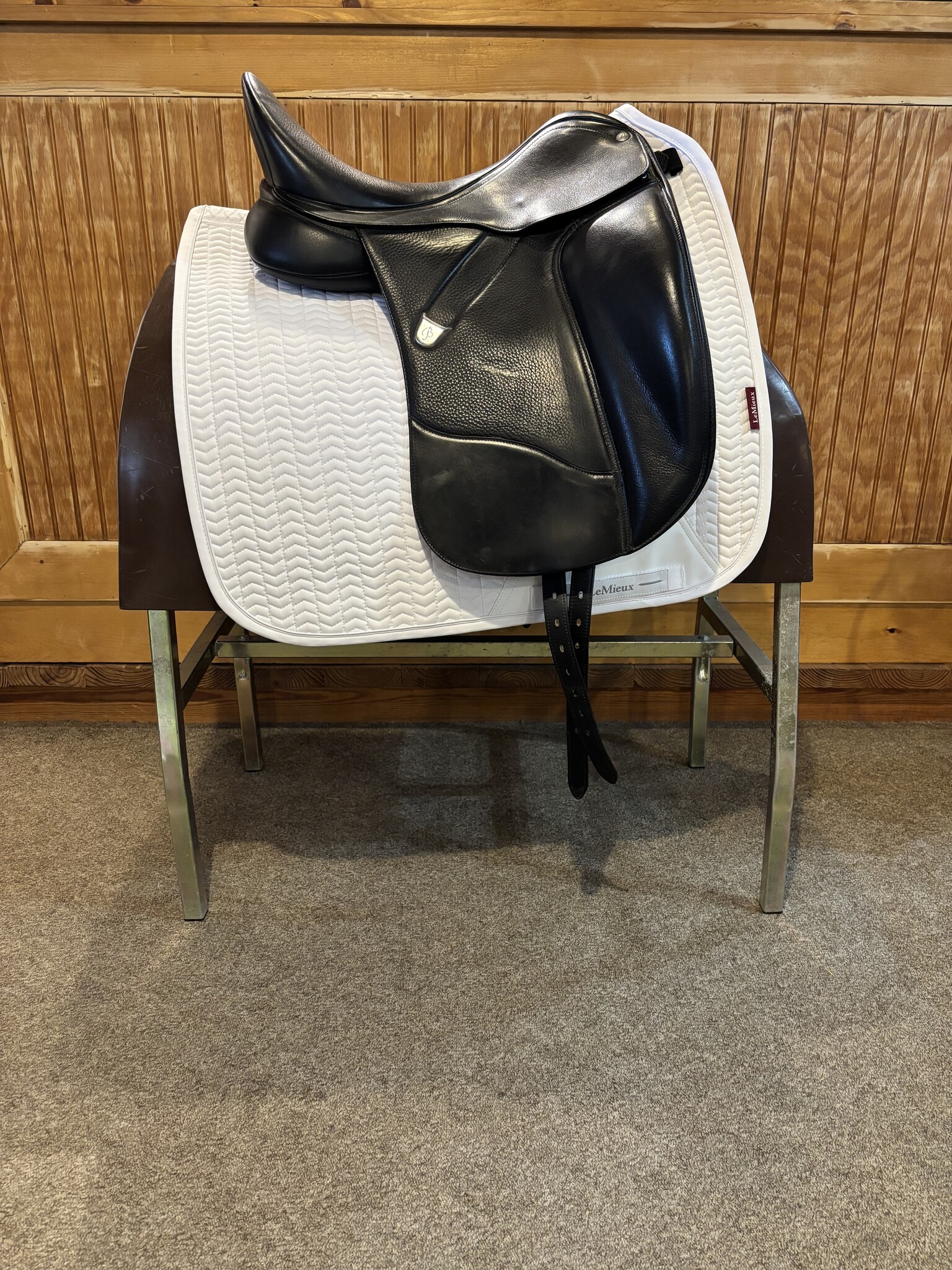 Used Bates Isabel dressage saddle with a 16.5” seat and adjustable gullet system. Designed for close contact and rider support with comfort for the horse. Well cared for and ready to ride.
