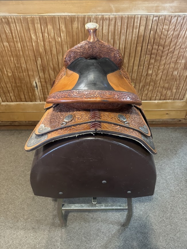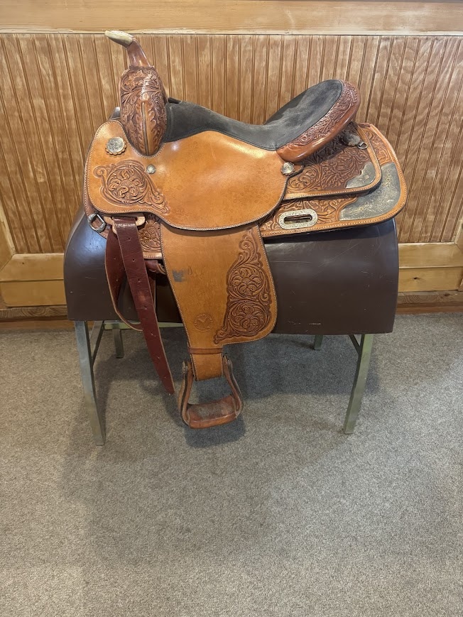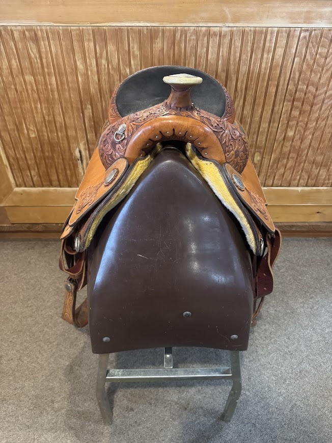 Gently used Circle Y Equitation saddle in excellent condition. Features a 15.5” seat and wide tree for a balanced, comfortable ride. Ideal for riders seeking quality craftsmanship, support, and classic western style.