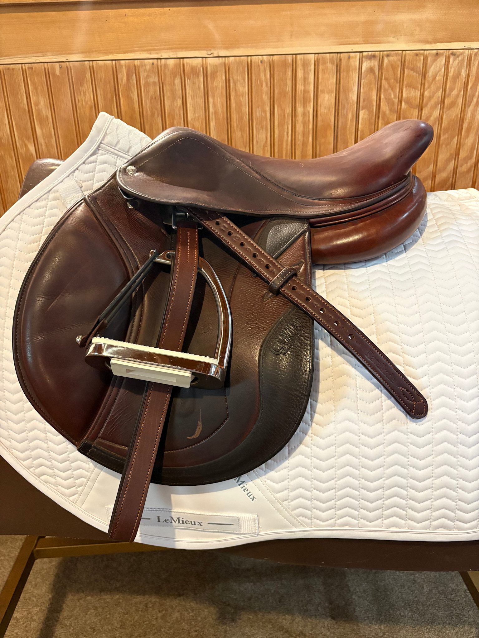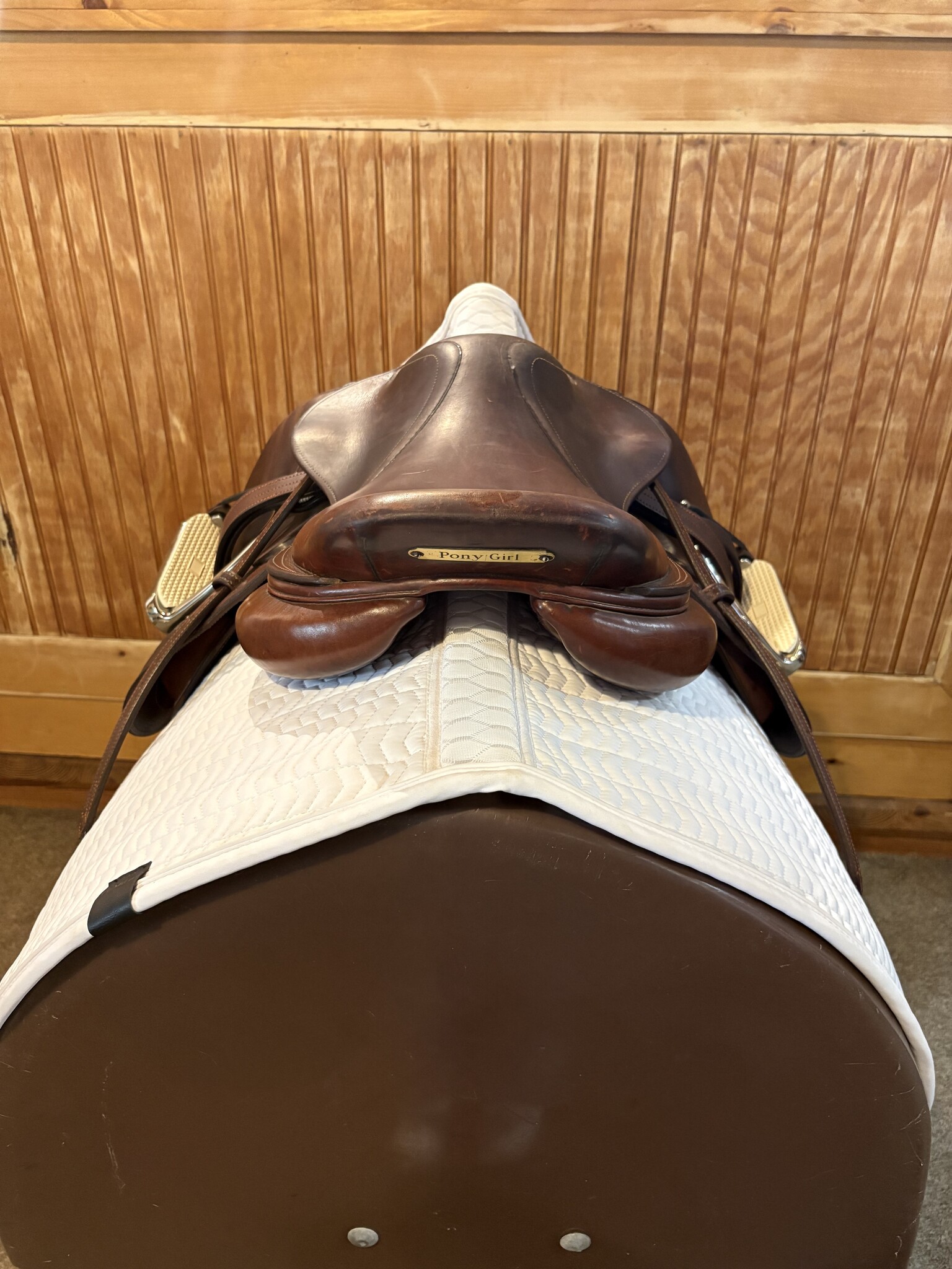 High-quality CWD 15.5″ pony jump saddle. Crafted from premium French leather, this saddle offers a soft and secure feel with the precision and craftsmanship CWD is known for. Designed with the look, feel, and performance riders love. Normal wear from use.