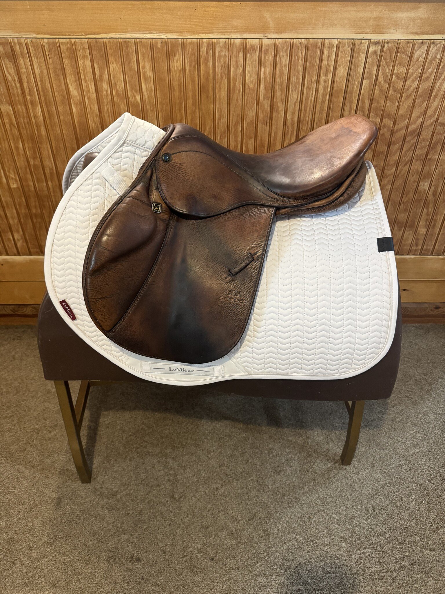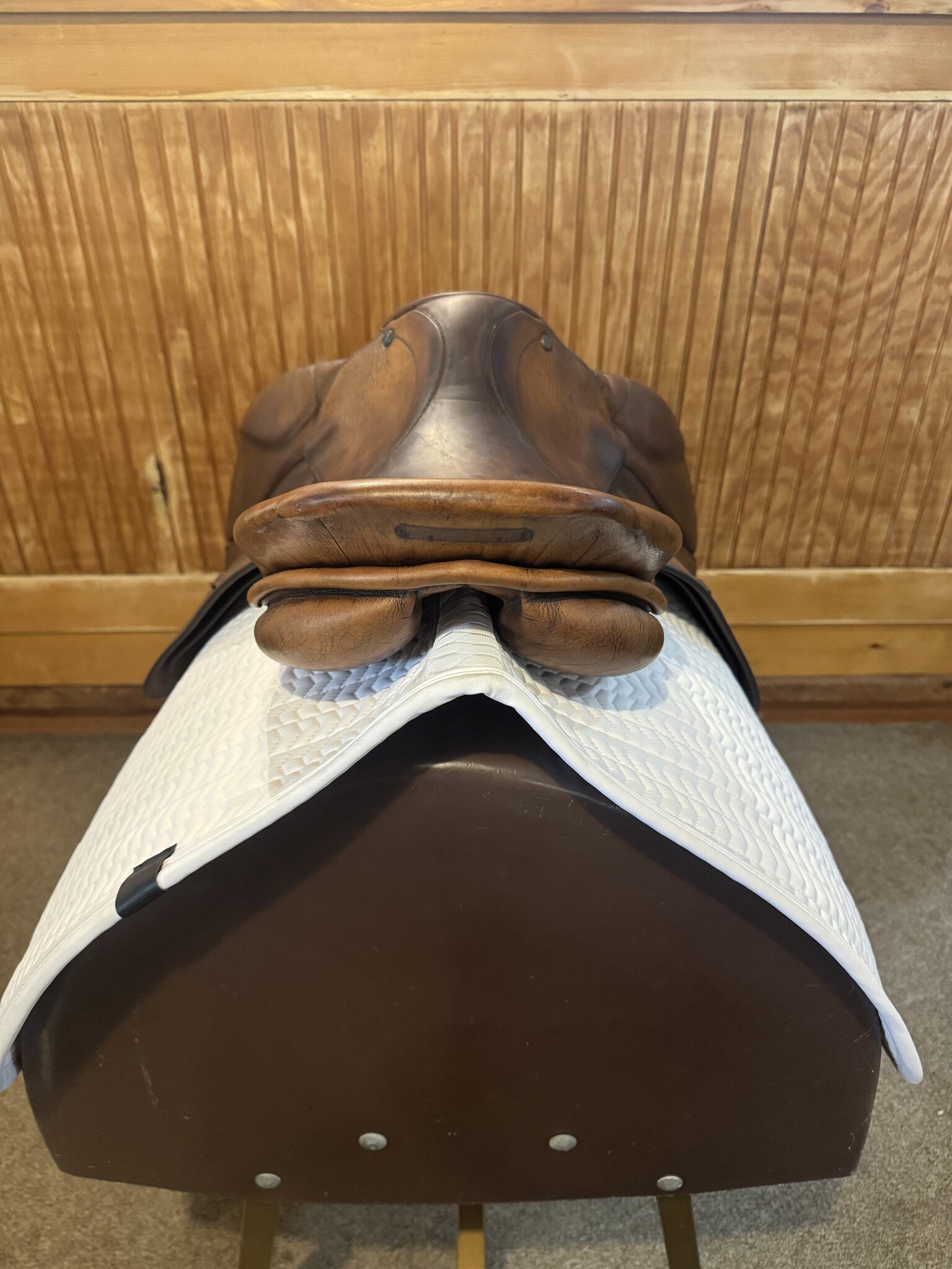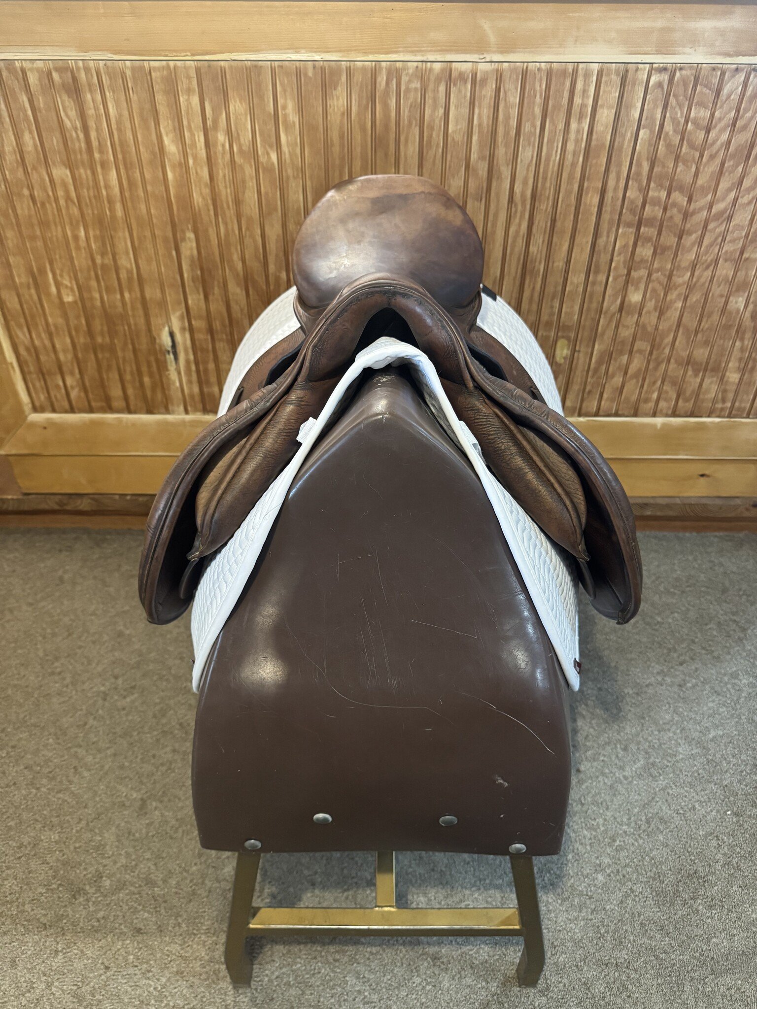 This saddle is known for its quality German craftsmanship offering excellent balance, comfort, and durability. The 16.5” seat provides a secure, supportive ride with well-padded panels for even weight distribution. Normal wear from use and no major damage.