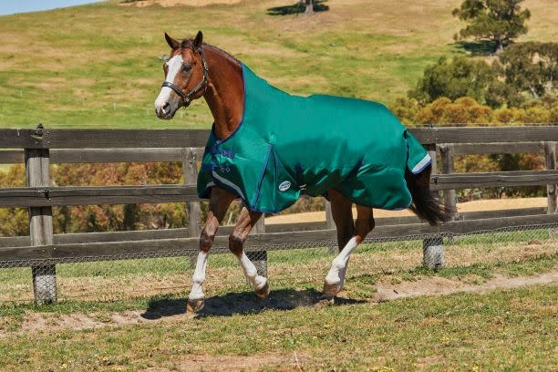 Memory foam wither relief pad that contours to the horse's shape and lifts the blanket off the wither to reduce rubbing and provide added comfort, quick clip front closure offering maximum adjustability and is compatible with the WeatherBeeta liner system. This blanket also offers 220g of polyfill which is easily identified with the WeatherBeeta temperature gauge badge, also featuring an extra large tail flap for maximum protection, reflective strips on front each side and tail flap for extra visibility, traditional side gussets for natural movement, twin low cross surcingles and elasticized, adjustable and removable leg straps for a secure and comfortable fit. The 210 denier strong and durable lining is smooth, providing less friction and rubbing of the coat while enhancing shine. Hydrostatic Pressure Tested to 2000mm plus. Moisture Vapor Tested to 3000g/m2 plus. 3 year warranty on hardware, waterproofness and breathability on turnouts.